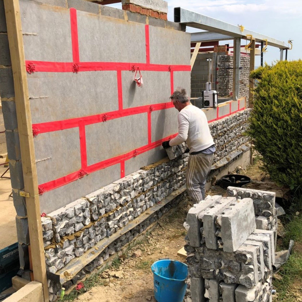 stone is then handcrafted into block form by our crew of experienced block-makers. The fully formed blocks can then be used without a need for a backing wall, ensuring a rapid professional finish whilst maintaining a clean cavity. The concrete backing is regularly laboratory tested to ensure it maintains a consistent N2 strength.